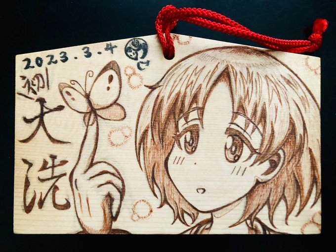 6 29 し ご お わ 〜 明日は、いよいよ大洗!…て事で、ガルパンの丸山ちゃんを絵馬に描かせて頂きました✨🦋<チョウチョ 23/03/03 17:37