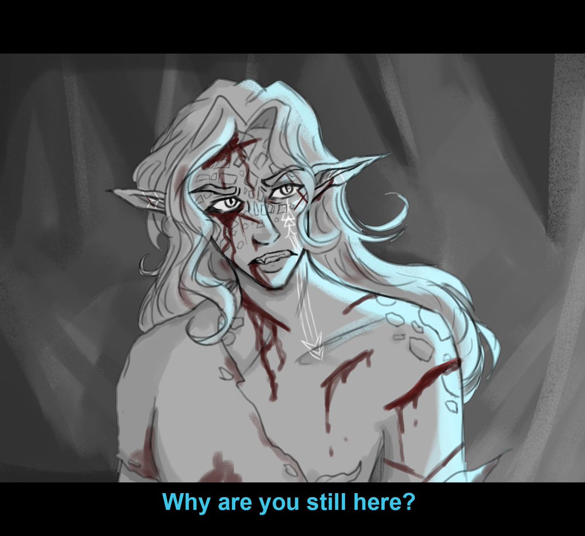 The latest PC in my Homebrew campaign, Nirath! He's played by @/firelit.art on Instagram #dnd #dndart #drow #halfelf #dndfighter #dndartist