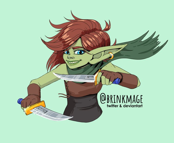 Finished raffle prize of @DrDiddlyB's Chartreuse! She's so cute and fun to draw! Thanks so much💜 🗡️💚🗡️ #artistsontwitter #dndart #goblin Also thanks to @AdorkaStock for the reference pictures!