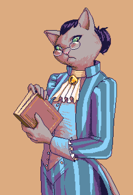 No humans allowed! Having a ton of fun doing character sprites for a project, with a little help from @AdorkaStock for pose reference. #pixelart #ドット絵 #characterdesign #originalcharacter #16colors