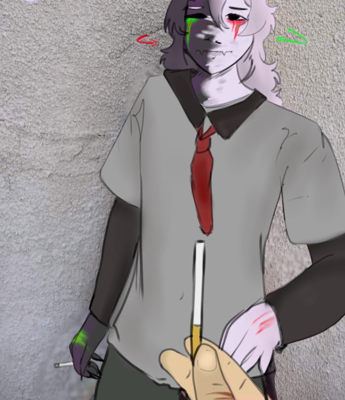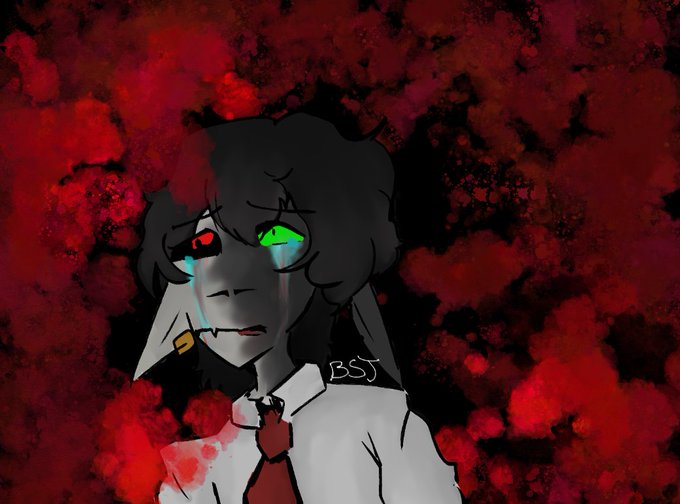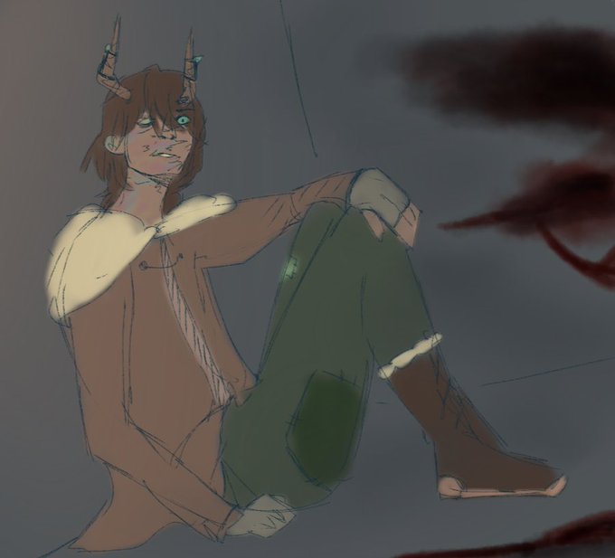 CW slight blood , creepy imagery / horror (repost) The Green Smile That Haunts Him #tommyinnitfanart