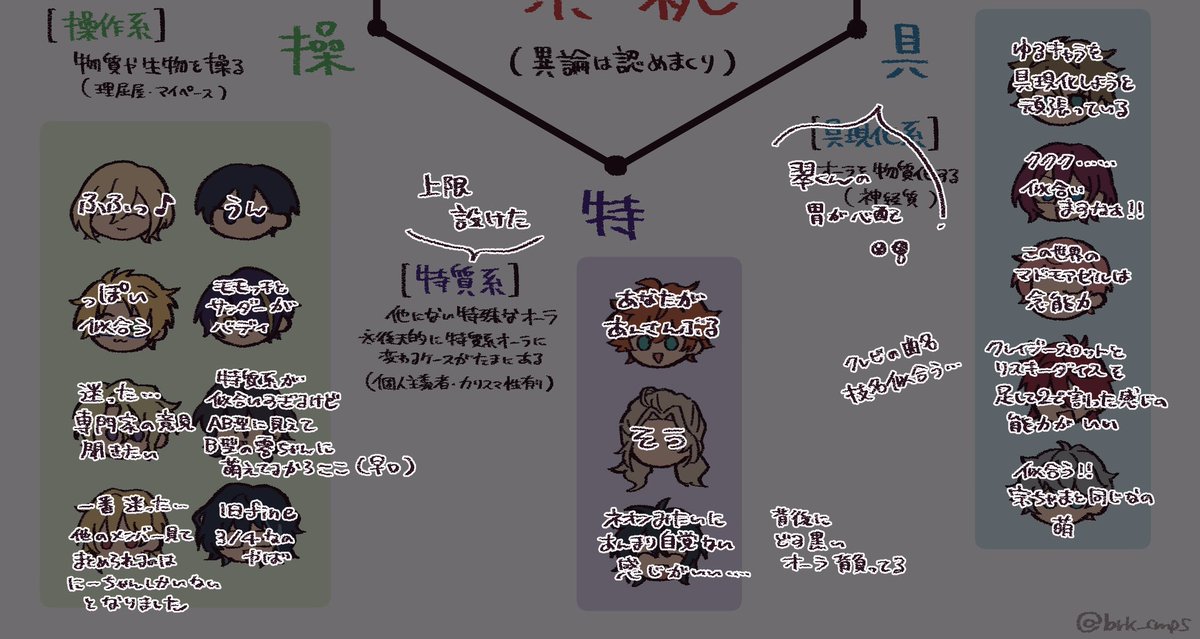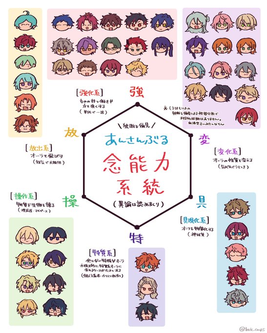1683 8441 フォロワーさんと盛り上がったあんス念能力系統メモ🥛🍃 23/06/24 14:42
