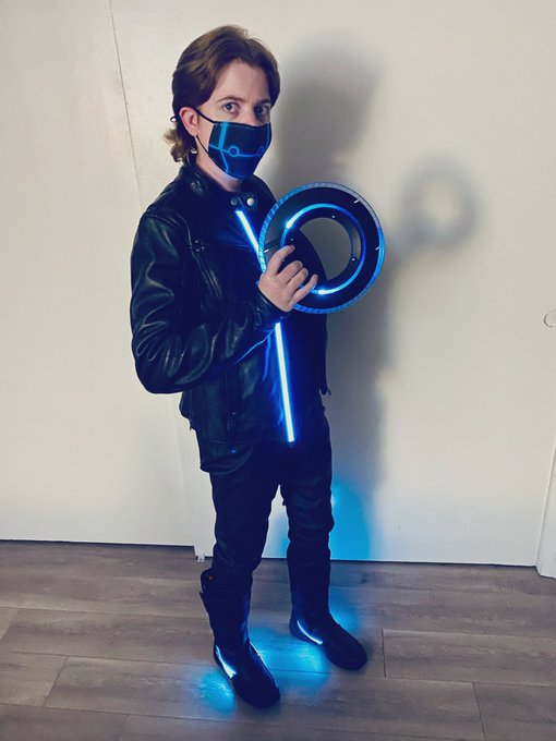 Happy Saturday, folks, as promised...Mister Flynn says welcome to The Grid and “wear your masks, you dipshits” 😷 (stellar face mask from @Kawaiian_Pizza 💙) #kevinflynn #tron #tronlegacy #cosplay #cosplayer #CosplayersUnder1k