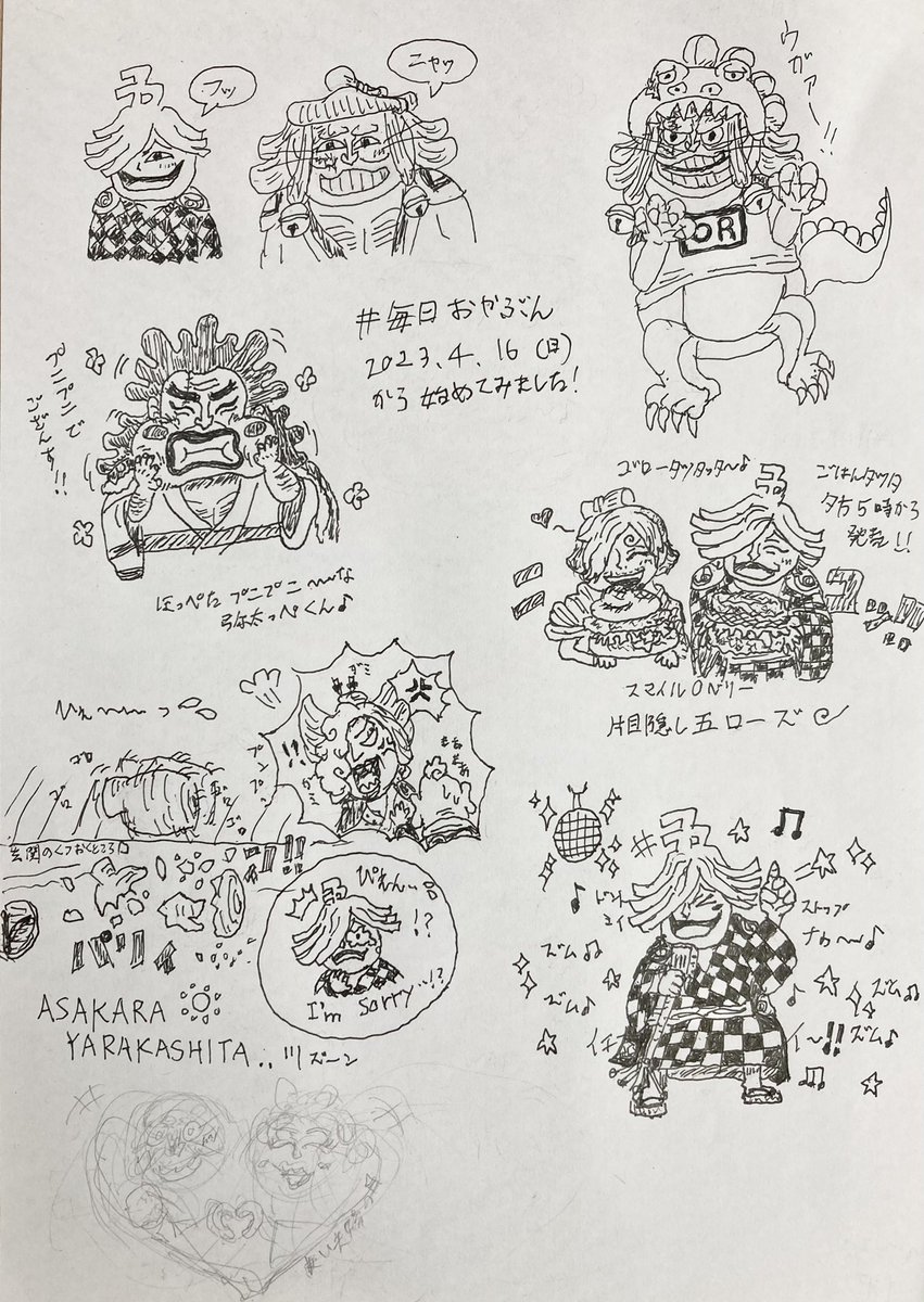 今月もいっぱい描いてすっきり〜🙌 白黒だけど、1ヶ月描ききった分を眺めるだけでなんか楽しい☺️✨ #毎日おやぶん #ONEPIECE #今月描いた絵を晒そう 後、ニカルフィ描くの楽しかった♪✍️