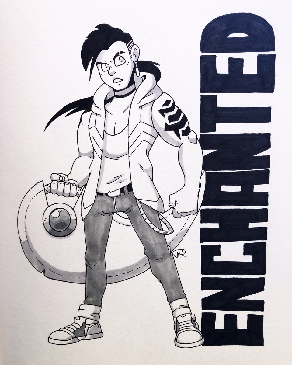 #Inktober Days 4-8 Prompts: Build, Husky, Enchanted, and Frail. Be sure to check out my Instagram (Instagram.com/bromojumbo) for some more back story on these characters! #Inktober2019 #drawing #sketch #characterDesign #ink