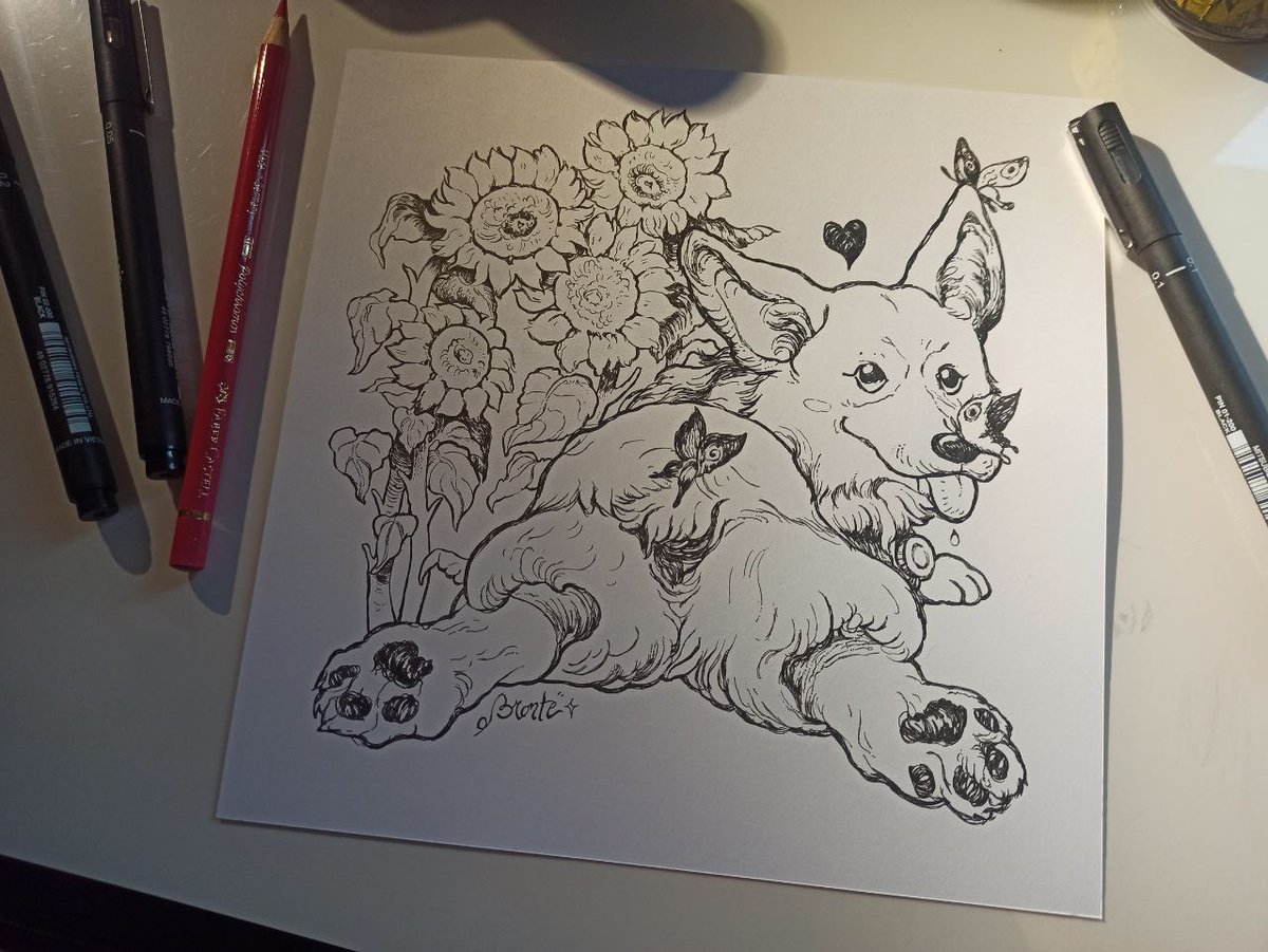 #inktober2022day14 Ein from #CowboyBebop Por aquí el proceso del trabajo de hoy. En mi #Instagram instagram.com/brontefianna/ podéis ver los trabajitos terminados :) #inktober2022. Soon available on my #etsyshop #art #ilustracion #ArtistOnTwitter #pintura #pencilart #anime #prints
