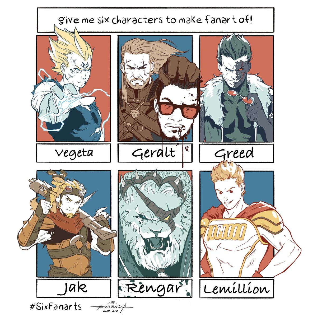 20 148 My first round of this #SixFanarts. Le te me know if you have other characters in mind for any next round #sixfanartschallenge #sketches #dragonball #majinvegeta #geraltofrivia #thewitcher #greed #fullmetalalchemist #jak #jakanddaxter #rengar #lol #lemillion #myheroacademia 20/04/13 19:34