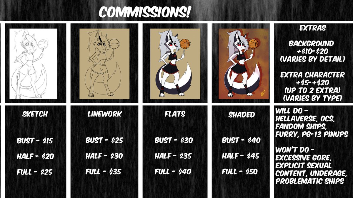 Hey everybody! I'm opening up for some Comm$ to help catch up on some bills. Four slots are available! #artistsontwitter