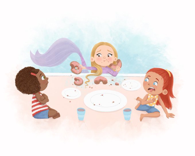 “Ummm... Did you want some?” #mermay #mermay2021 #kidlitart #kidlit #picturebook #scbwi #picturebookart #illustrator #childrensbookillustration