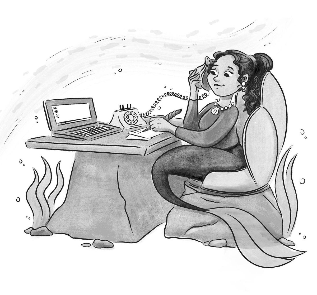 Happy Mermay! 🪸Day one: Workers. I drew an office worker 💕 A desk under the sea sounds so cool and she’s a lefty like me 😍 I’m hoping I’ll be able to fit in a mermaid a day if I do them this way 🤞wish me luck! #mermay2022 #kidlitart #mermay