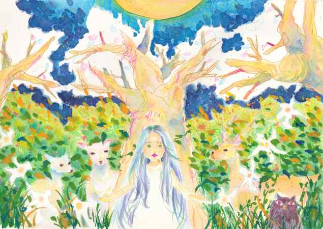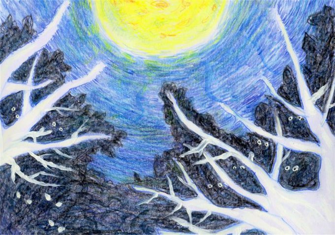 相談者:2017年の自分 『夏の夜の森。森の主たる大樹が暗がりに"ペカーッ"ってしてる感じの描きたかったんだけど、なんか白いんズ…でも、これ以上どうしたらいいか分かんないから放~置っ』#みんなで楽しむtwitter展覧会 #色鉛筆