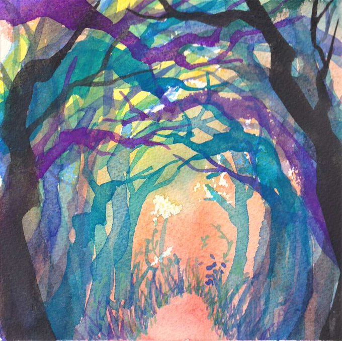 草木が生い茂る森の 木洩れ日のレースが浮かび上がる小路は 人生を導くガイドのようです。 メイキング動画はコチラ⇒youtu.be/IXNEVrmawl0 #絵柄が好みって人にフォローされたい #watercolor #forest #track #森 #小路 #水彩画 #美術ネットワーク #みんなで楽しむtwitter展覧会