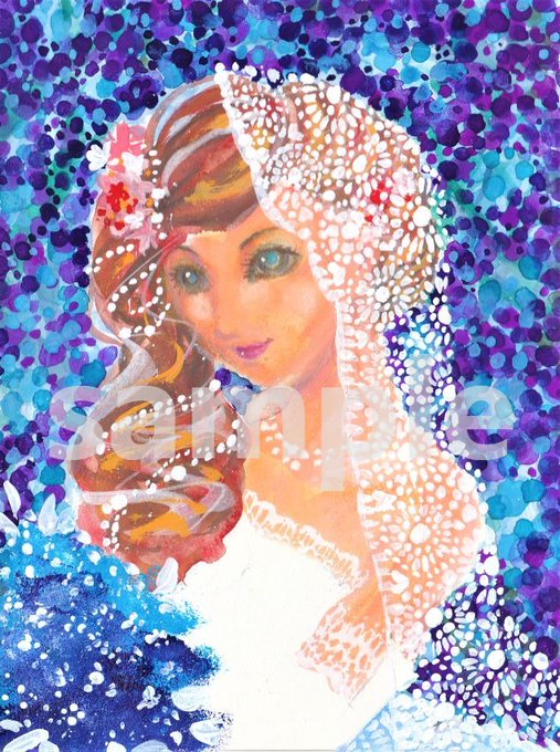 青と白 ベール?描くの楽しかった。 背景のドットを描いてる時 無心になれてスッとリフレッシュできた感じ。 写経もこんな感じなのかな。 書くのは疲れちゃいそうだから私は専ら描く方かな。 #みんなで楽しむTwitter展覧会 #絵柄が好みって人にフォローされたい