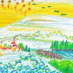 コレ ダイソーさんのクレヨンで描きました。 ケチ2星人が罪悪感なくリハビリ絵を 描こうと思った時に選んだのがクレヨンでした。 クレヨンの扱いに慣れ始めた頃に生まれたのがこのコでした。 本日めでたく旅立ちます。 幸せにおなりね。#みんなで楽しむTwitter展覧会