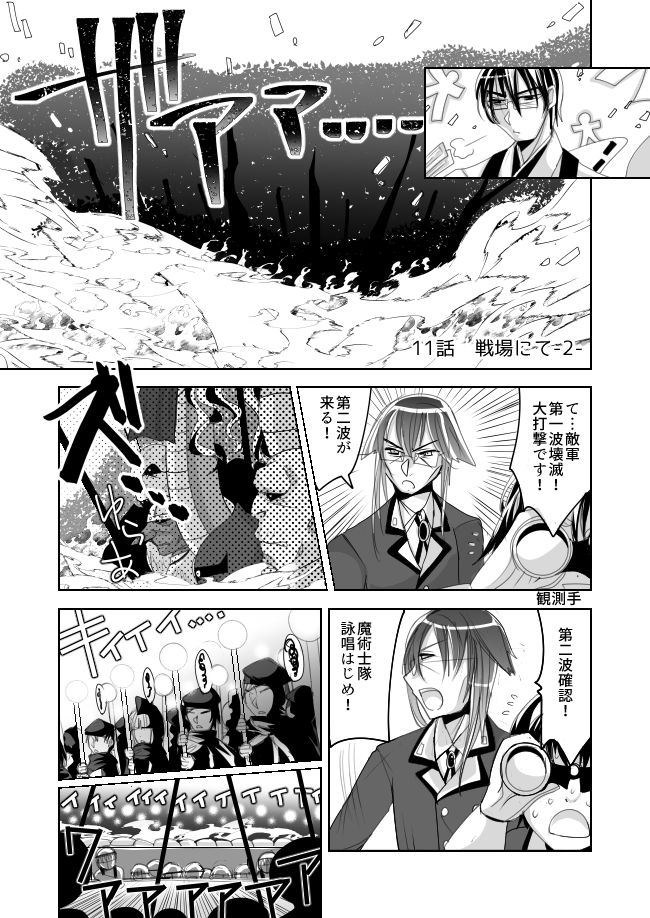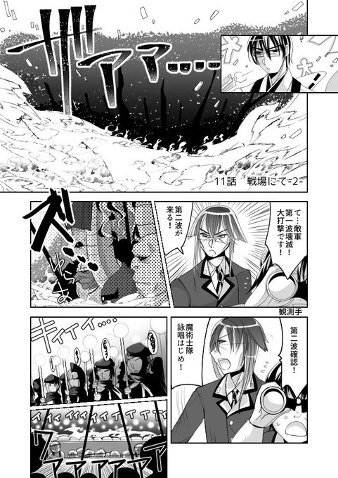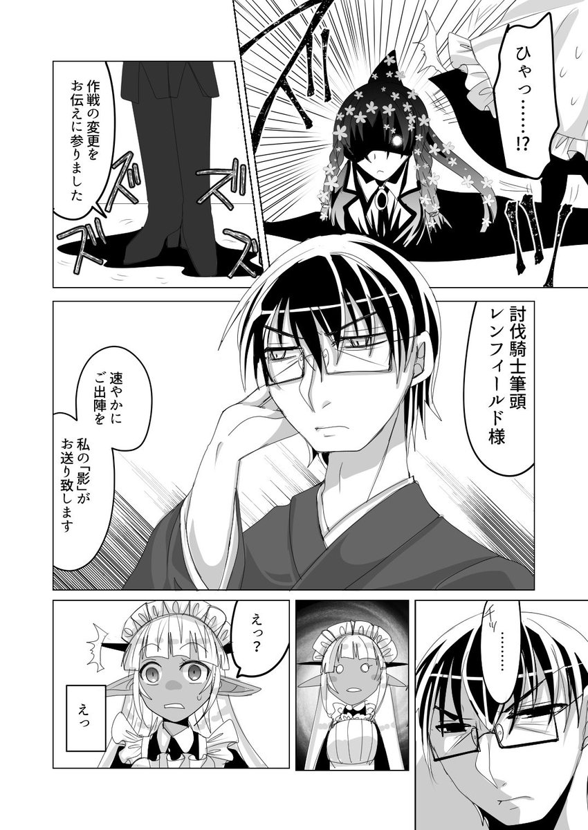 偏屈主人と見習いメイド【10】戦場にて-1- 見開きページってどう投稿するのが正しいのか… 4P更新で見開き&ぶちぬき使うのもアレですけど時間はかかりました…魔物のレパートリーが無い! ※今までの→pixiv.net/user/46973/ser… #主人とメイド #創作漫画