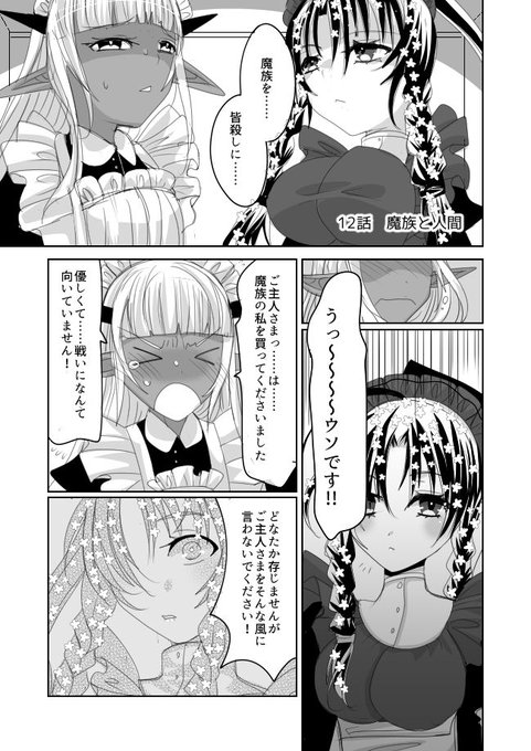 偏屈主人と見習いメイド【12】魔族と人間 大変久々のバテシュアサイドですが取り敢えず今回の更新はここまで…再開時期は未定です ※今までの→pixiv.net/user/46973/ser… #主人とメイド #創作漫画