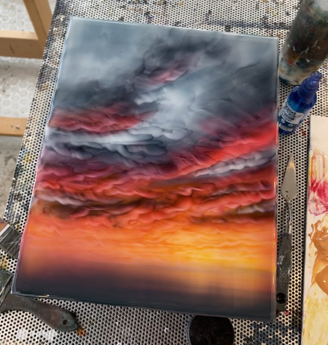 Sky of Fire 11”x14”, acrylic #artistsontwitter #ArtistOnTwitter #painting #artwork #SaturdayVibes