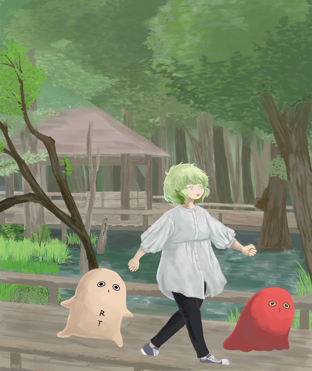 0 3 散歩している絵を描きました。 #イラスト 22/08/08 16:34