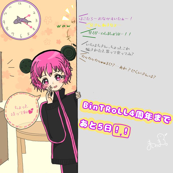 10番手ましゅまろ。 バトン繋ぎます🐈🐾 これからの世界一ハッピーな6人グループに幸あらんことを🐟🌸 BinTRoLL結成4周年まであと5日!🙌 #びんとろ4周年カウントダウンリレー #bintrollFA #じら絵ちゃん