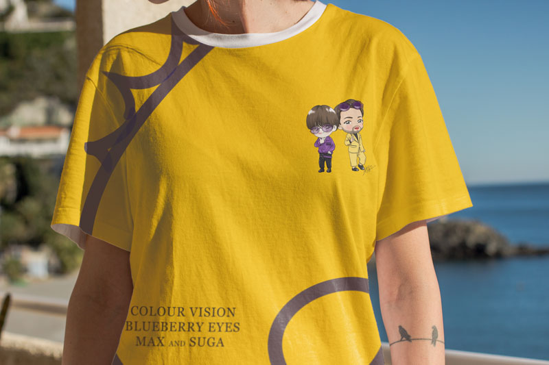 예전에 티셔츠 공모전할때 냈던 티셔츠 시안ㅋㅋㅋ 그림은 예쁘지만 티셔츠디자인은 처음이라 어헣헣 역시 깔끔하게 떨어졌죠 ㅎㅎ The mockup work for the Max's promotional t-shirt design. #kimbapsOldDrawing #김밥의그때그그림 @BTS_twt @MAXMusic #btsfanart #BlueberryEyes #suga