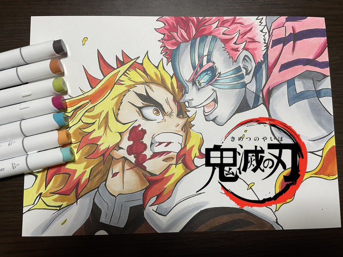 #鬼滅の刃 #鬼滅の刃イラスト #猗窩座 #煉獄 #猗窩座イラスト #煉獄イラスト #煉獄杏寿郎 #模写 #kimetunoyaiba #akaza #rengokukyojuro #kimetunoyaibaanime