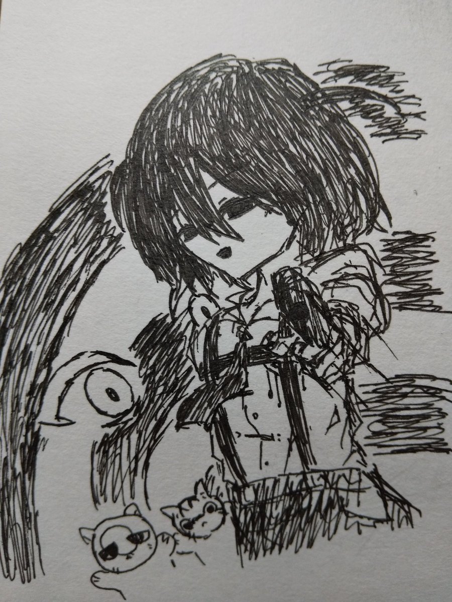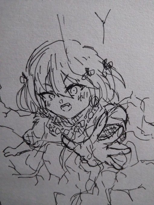 今まで気持ち悪い絵ばっか描いてた弊害で最近こんな落描きしかしてない(どうせならこういう絵上手くなりたい #まっしろキャンバス
