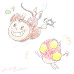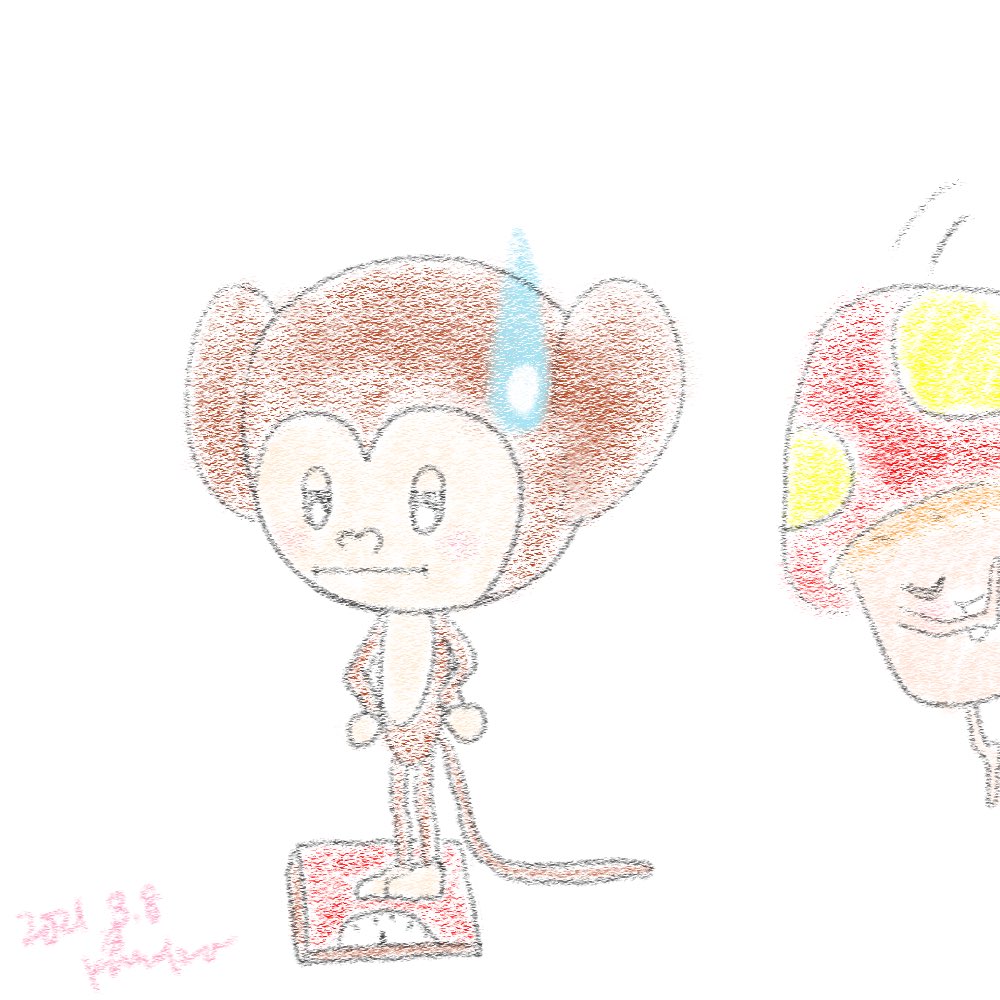 #今月描いた絵を晒そう 3月‼️ 5つ目❣️ おさるとキノコは2つしか描かなかったな・・・ Gifも作ったね。 アイコンにばっちり、優しい雰囲気の水彩の子たちも描いたね。 #ブーブーキノコの絵 #杏奈ちゃん #おさるとキノコ