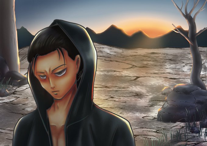 #今月描いた絵を晒そう 3月‼️ 7つ目❣️(ラストだよん🍄) そして最後に、、、 エレンの誕生日向けに描いた、 太陽に背を向け荒野に立つエレン… 私はまだ期待してる。 エレンが世界を救ってくれることを! #ブーブーキノコの絵 #エレン #進撃の巨人