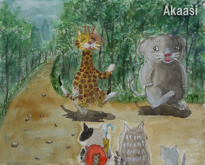 おとうさーん、おかーさーんっ! #水彩画 #アナログ #風景画 #風景 #背景 #スケッチ #猫 #イラスト pixiv.net/artworks/99202…