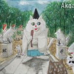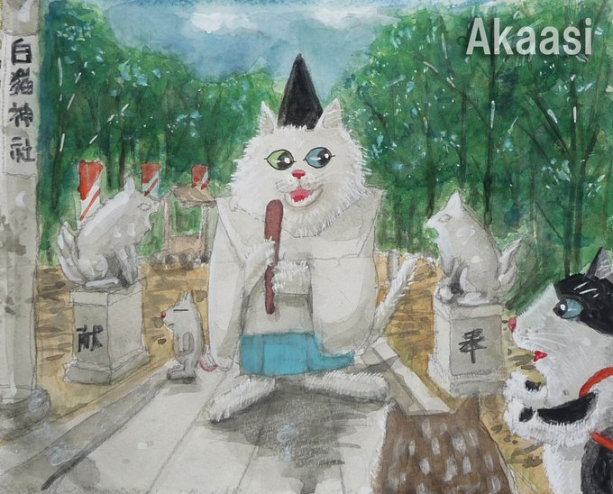 「白猫さんは、神主さん?」 #風景 #水彩画 #アナログ #風景画 #背景 #スケッチ #猫 #イラスト pixiv.net/artworks/98257…