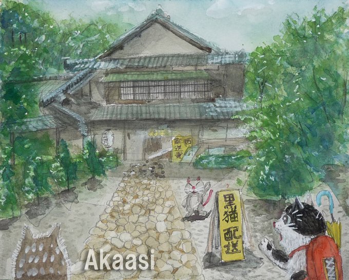 0 3 黒猫配送って会社が、この先にあるみたいだね。 #風景 #水彩画 #アナログ #風景画 #背景 #スケッチ #猫 #イラスト pixiv.net/artworks/98935… 22/06/09 19:58
