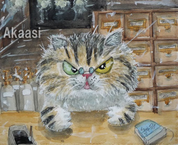 人間の世界では猫は働かないんだよ。 #イラスト #水彩画 #アナログ #風景画 #風景 #背景 #スケッチ #猫 #猫の国 pixiv.net/artworks/10078…