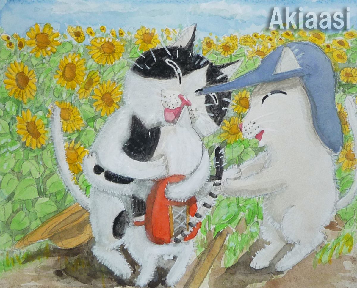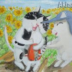ひまわりさーん、息子さんが帰ってきたよーっ!! #風景 #水彩画 #アナログ #風景画 #背景 #スケッチ #猫 #イラスト pixiv.net/artworks/99140…