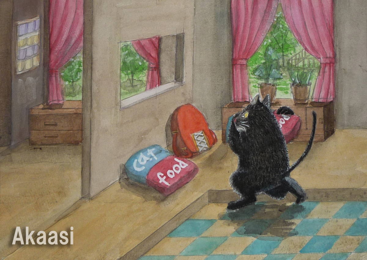 「あら、黒猫さんが忘れたリュックの中に子猫ちゃんが・・・。」 #水彩画 #アナログ #風景画 #風景 #背景 #スケッチ #イラスト #猫の国 pixiv.net/artworks/10051…