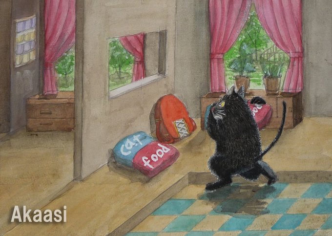 0 8 黒猫さん、バイバーイ!! #風景 #イラスト #水彩画 #アナログ #風景画 #背景 #スケッチ #猫 #猫の国 pixiv.net/artworks/10044… 22/08/13 11:45