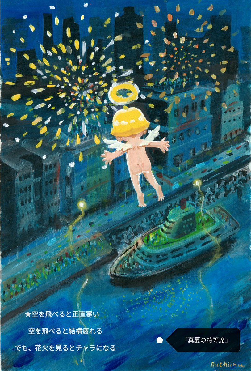 昔デパートで、 ゲームボーイを買った その時ほど 心の底から嬉しい事は 無いと思う。 人には期限があって その期限のなかで 心から幸せを感じる 透明な時はほんのわずか #アナログイラスト #みんなで楽しむTwitter展覧会 #天にものぼる #イラスト依頼承ります