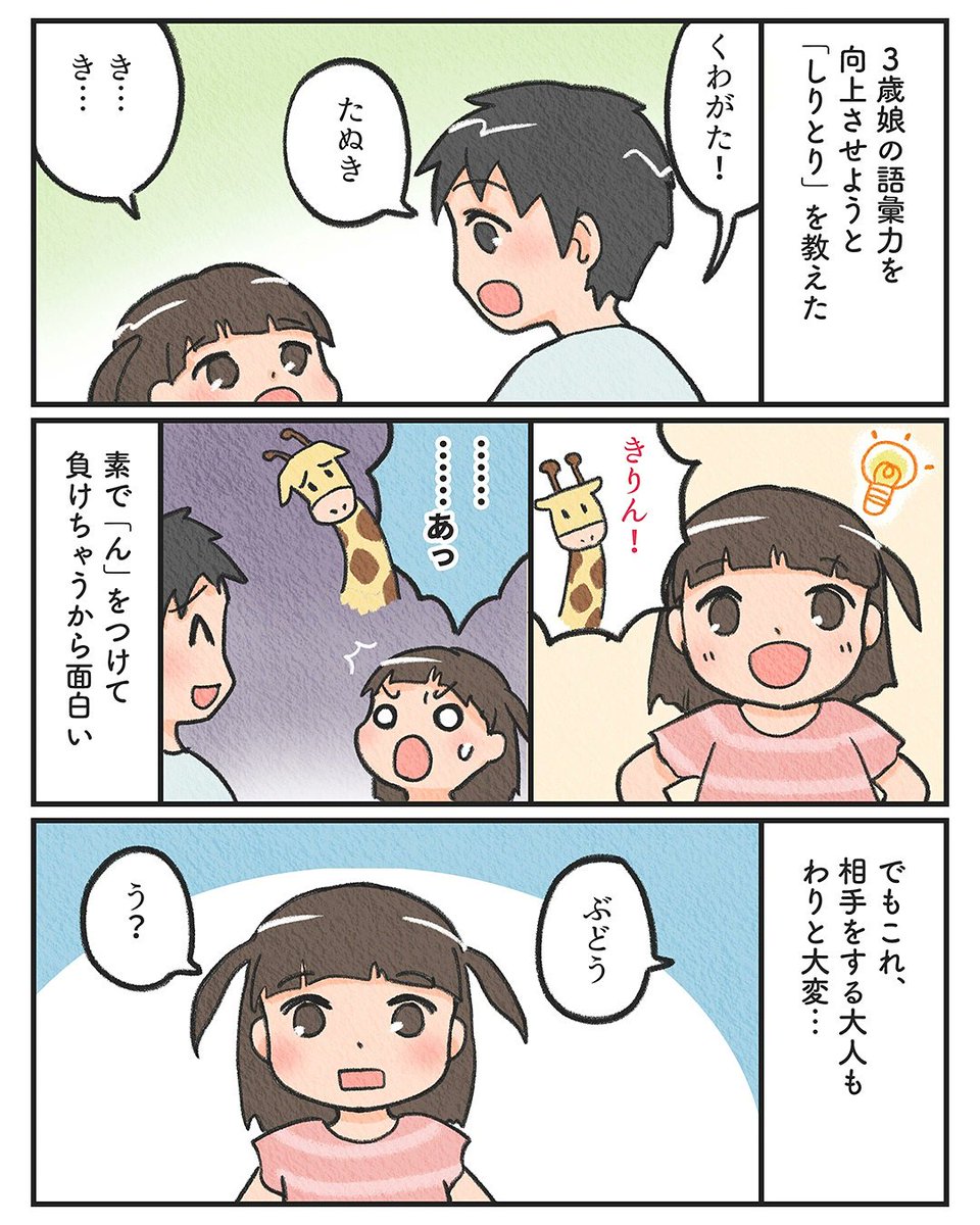 1 4 3歳娘としりとりした話。「る」って大人になっても難しくない? #育児漫画 #エッセイ漫画 #子育て漫画 21/08/07 17:40