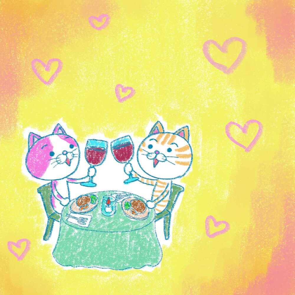 1 15 🐱 乾杯〜🍷🍷 #イラスト #イラストレーター #イラスト依頼 #有償依頼 #ゆるいイラスト #挿絵 #絵本 #シンプルイラスト #乾杯 #ねこイラスト 22/05/29 17:52