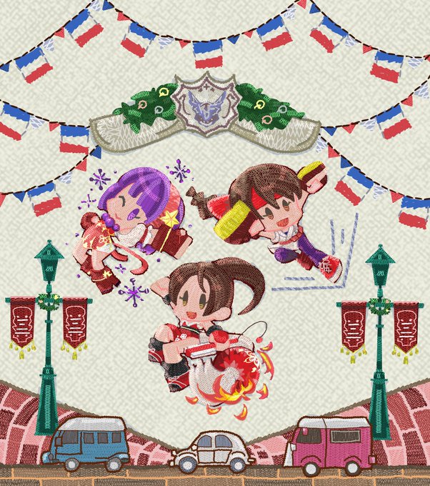 一周年おめでとうございます! 修行した技を繰り出す瞬間ってとっても楽しいだろうなって思いながら描いた三人娘 #KOFXVイラストコンテスト