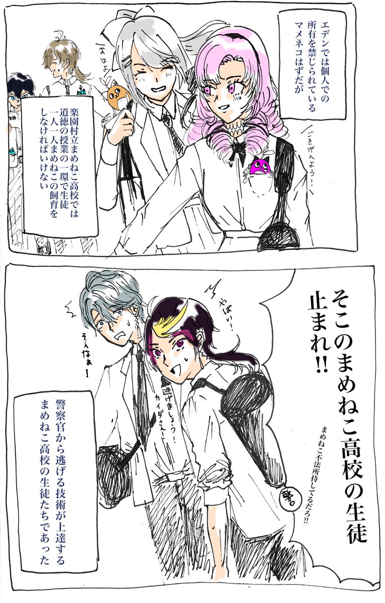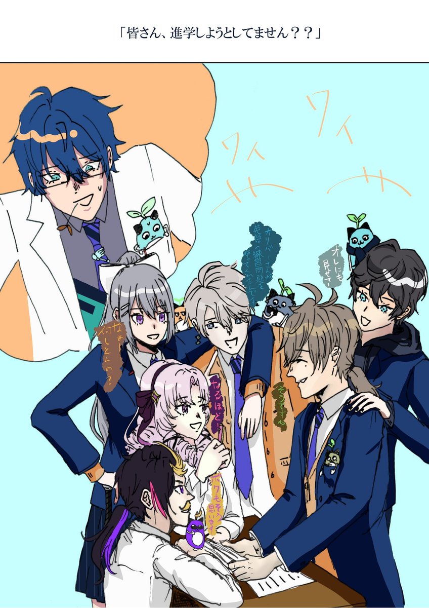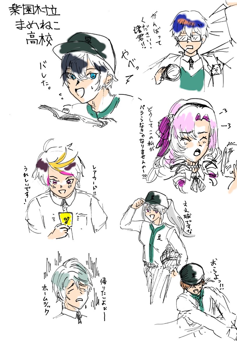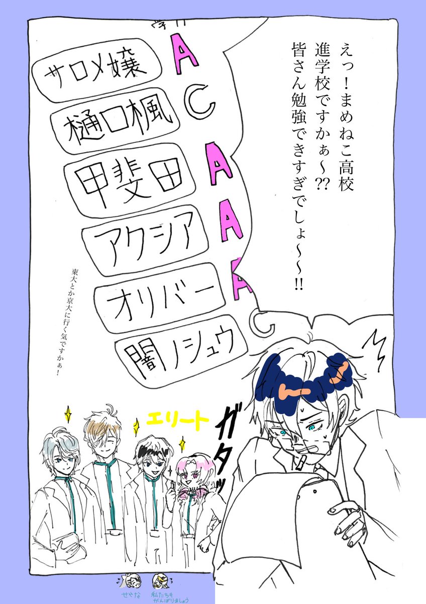 まめねこ高校、教授やシュウ中心に英語の勉強会していてほしい ※2枚目セリフ差分 #にじさんじアルプススタンド #まめねことレオス #絵バンス #サロメ百万展 #でろあーと #YaminoArt #AXIART #描いた晴