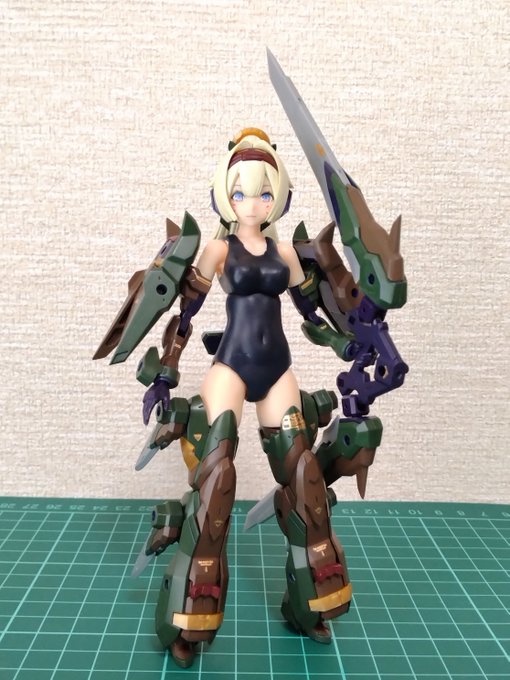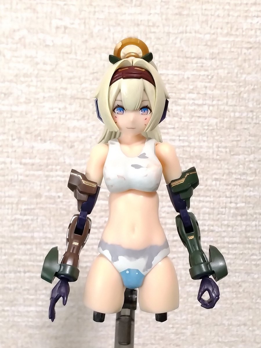 2 4 ボディラインが素晴らしい胴体パーツをベースに、朱羅弓兵ちゃんのスク水ボディを作ってみました ボリューム感が増して良いのではないでしょうか 併せて当初からモチーフだった10式戦車カラーの装備も塗り直しました #メガミデバイス 23/07/01 15:21