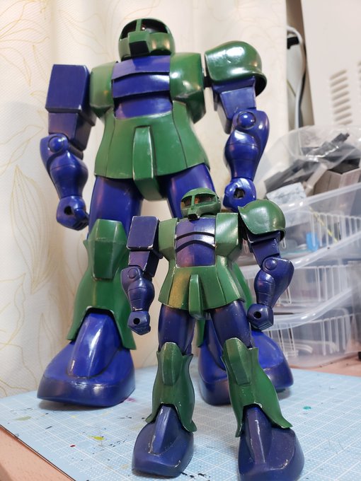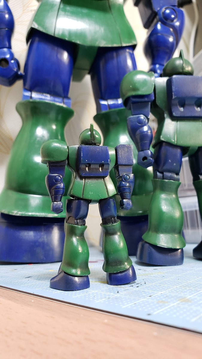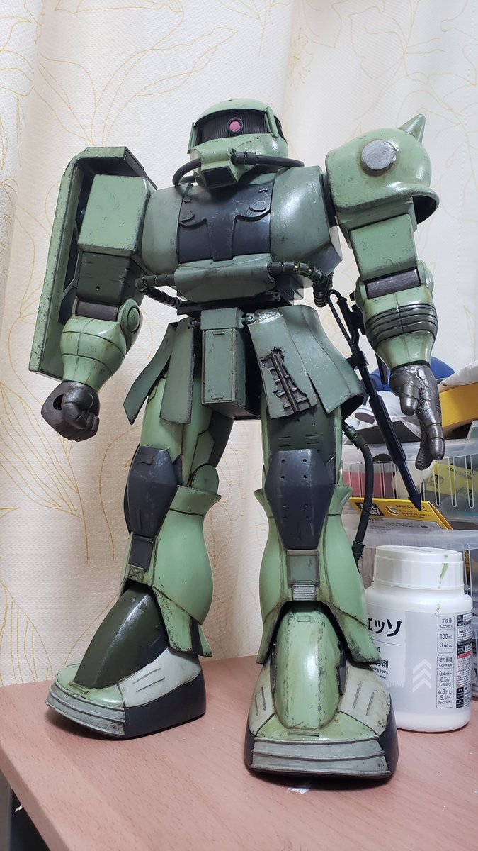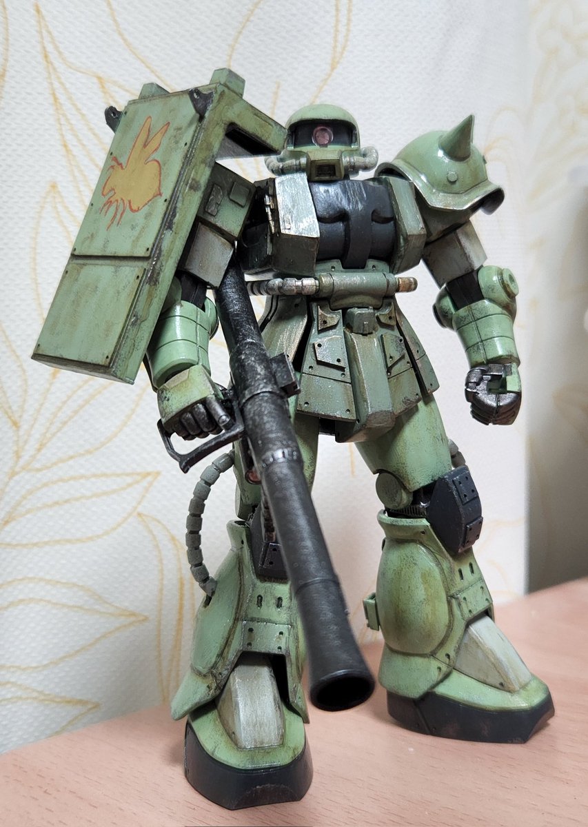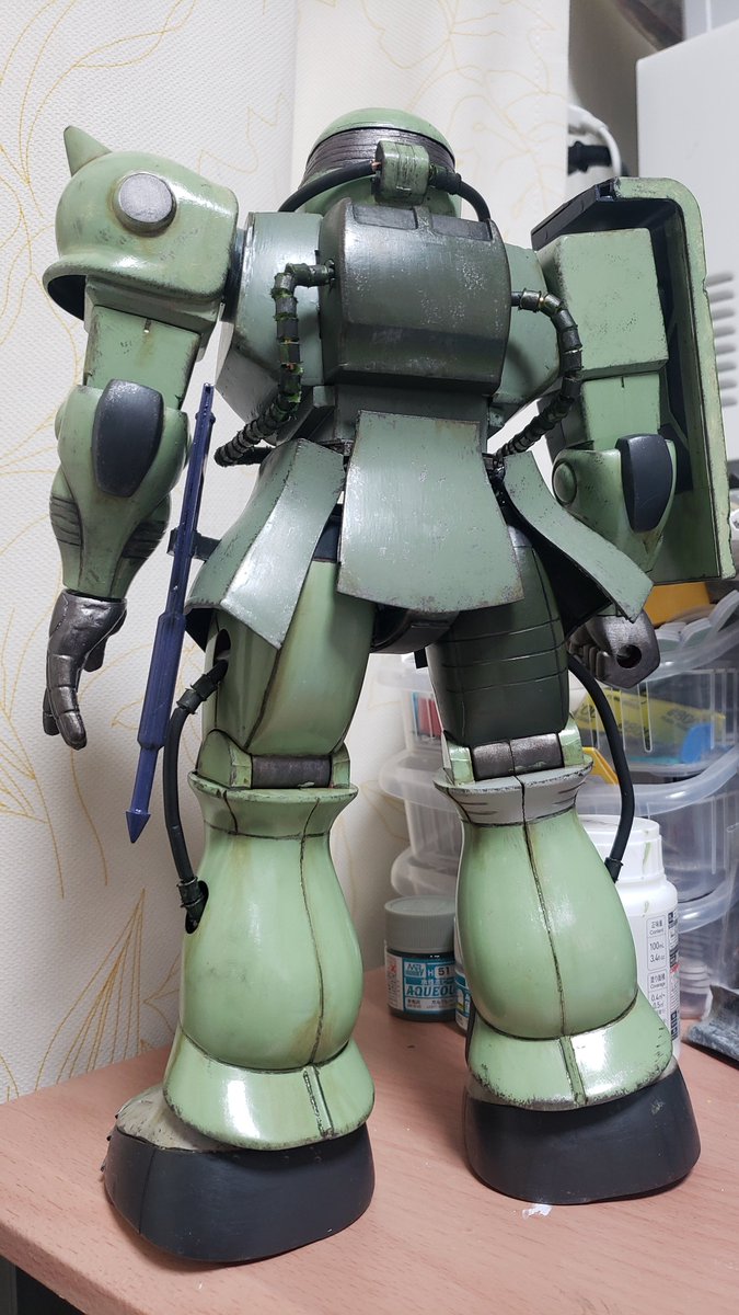 お気楽製作だったので、顔とかバックパックとか細かいとこはやっつけです🤣 旧ザクの作り方は、林哲平さんの #ガンプラ凄技テクニック を読み込んで作りました✨ 1/60は大きい分作りやすいし、迫力がありますね☺️ 困るのは置き場所、撮影場所だけ🤣 1/60旧キット、はまりそう(笑) #ガンプラ