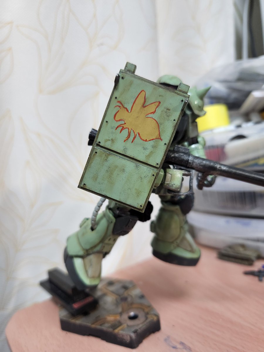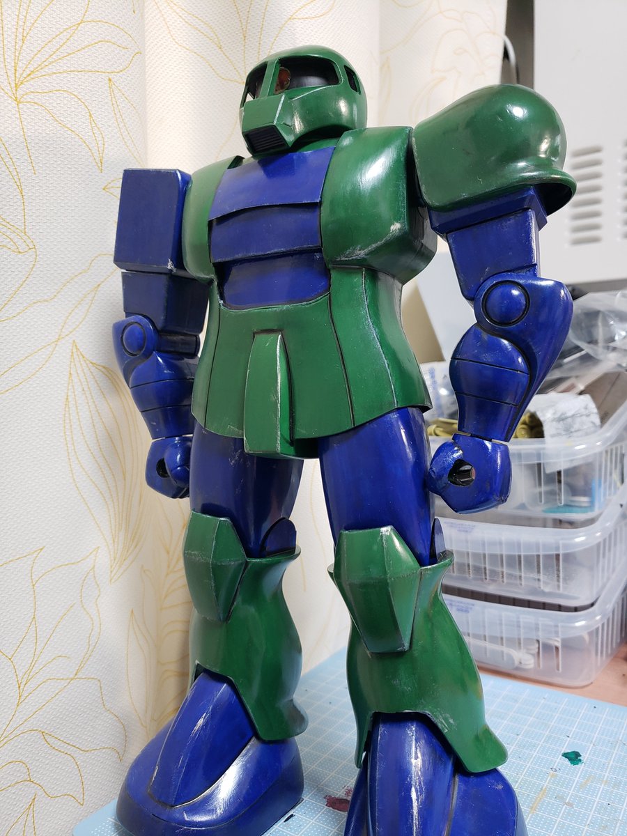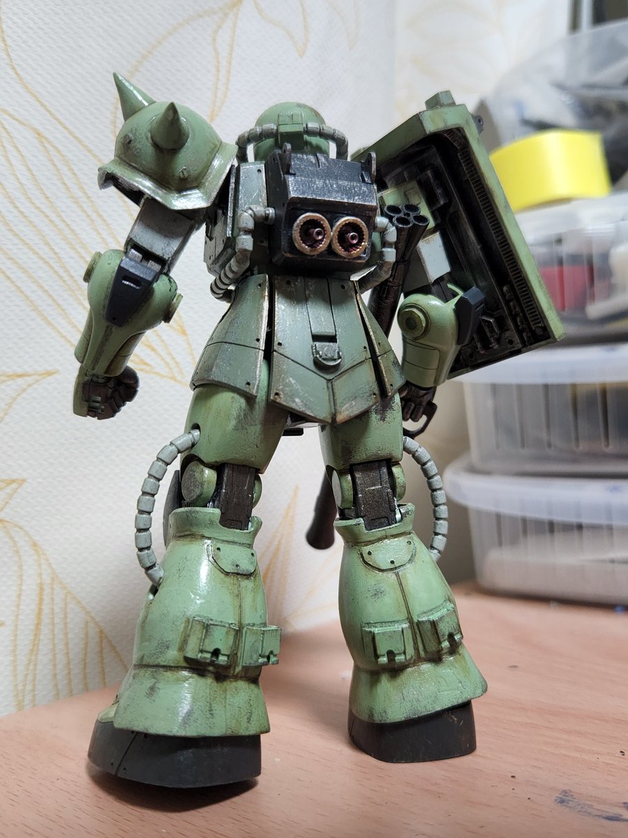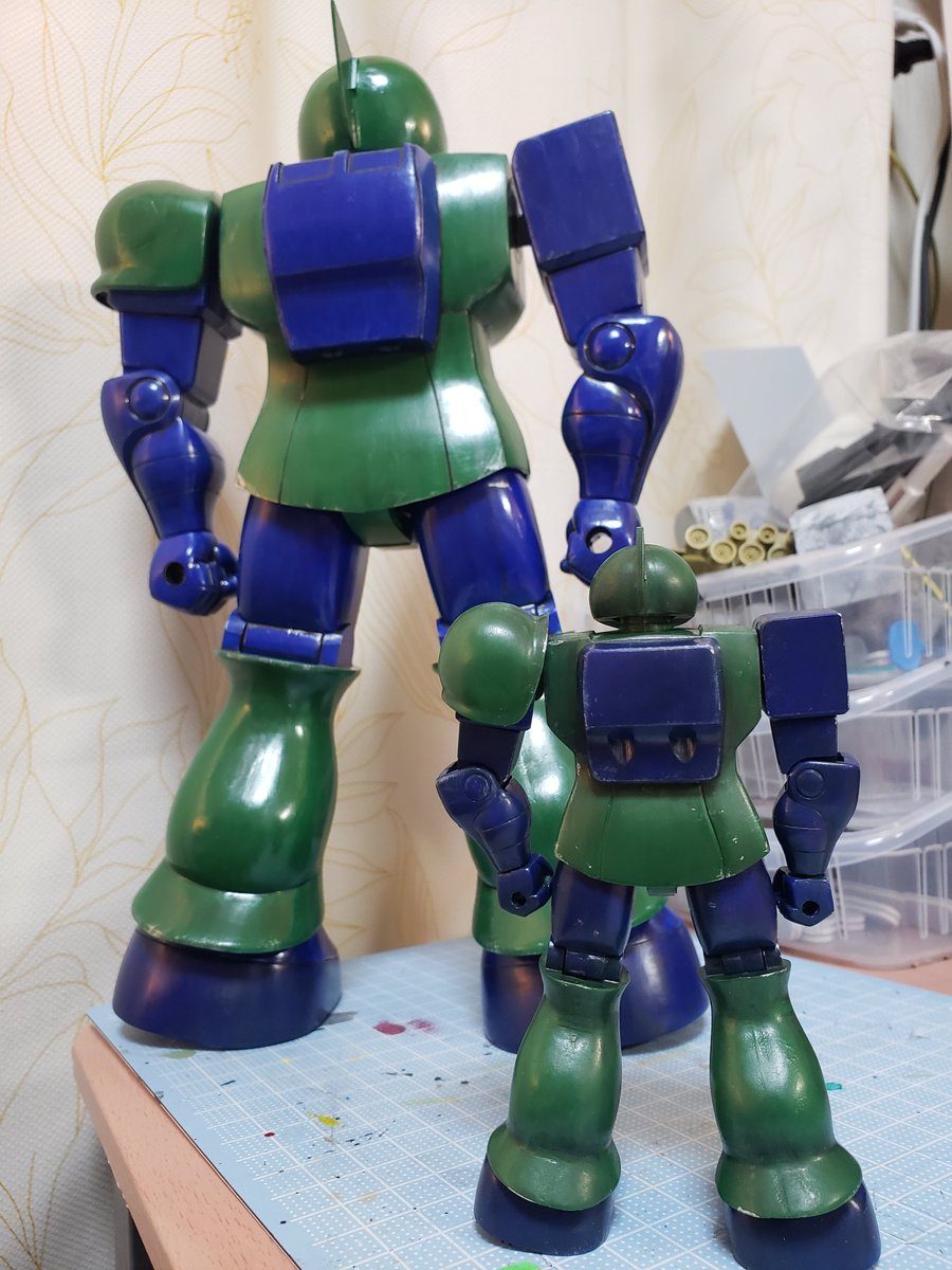 お気楽製作だったので、顔とかバックパックとか細かいとこはやっつけです🤣 旧ザクの作り方は、林哲平さんの #ガンプラ凄技テクニック を読み込んで作りました✨ 1/60は大きい分作りやすいし、迫力がありますね☺️ 困るのは置き場所、撮影場所だけ🤣 1/60旧キット、はまりそう(笑) #ガンプラ