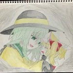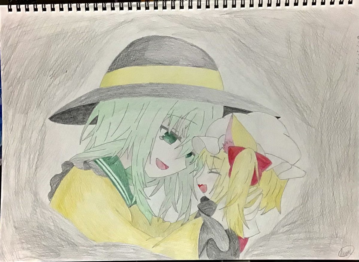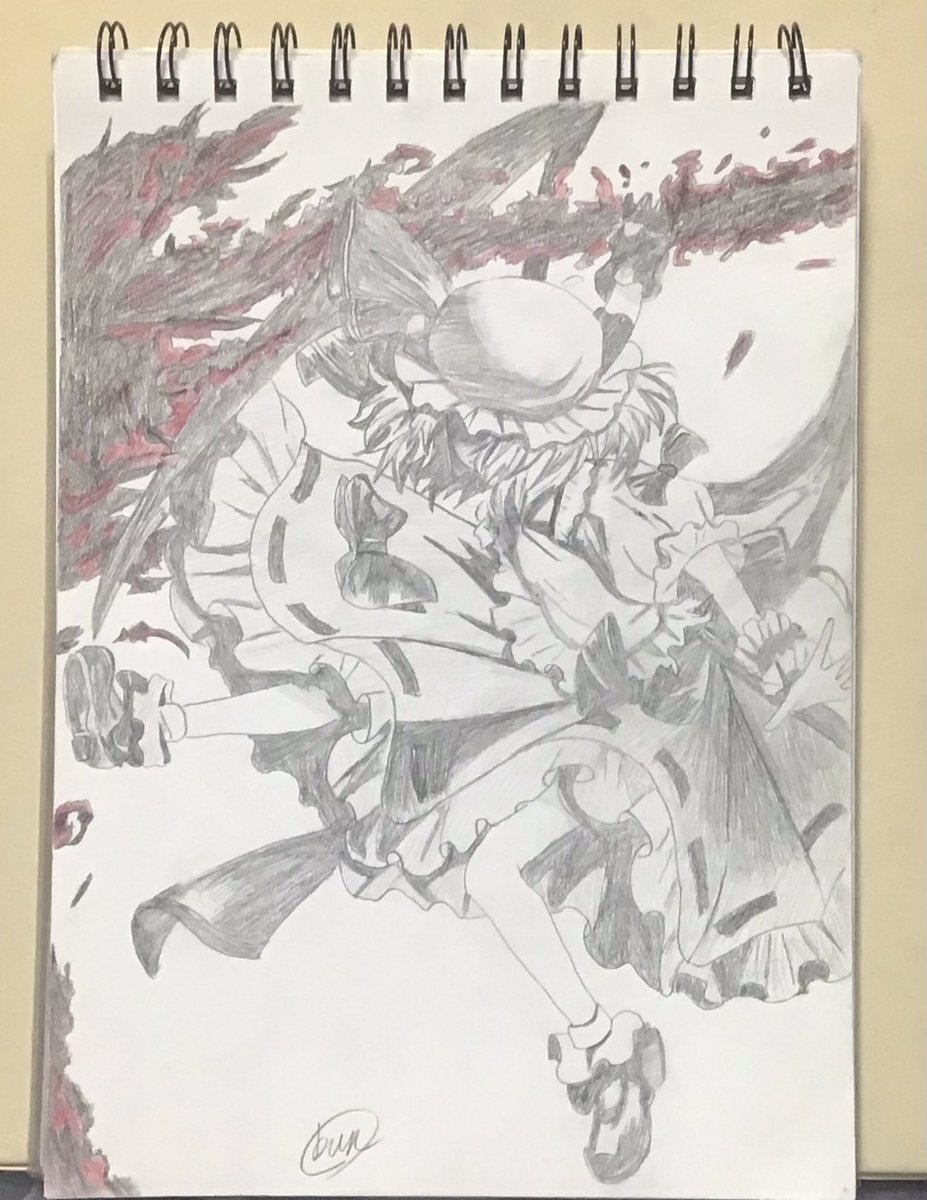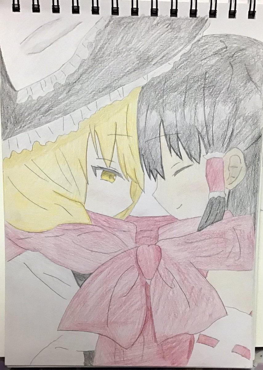 レミフラ描きました。 折りたたみ式の色紙使ったから真ん中ちょっとおかしくなったけど満足。 デカいサイズは疲れます… #東方 #イラスト #レミリア・スカーレット #フランドール・スカーレット #レミフラ