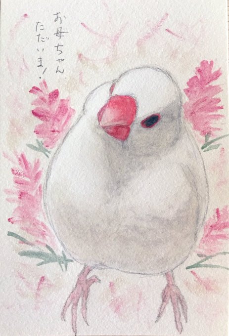 絵手紙風にするのもいいかも……✨( ˙༥˙ ) (手紙か?これ……?) #文鳥イラスト #水彩画