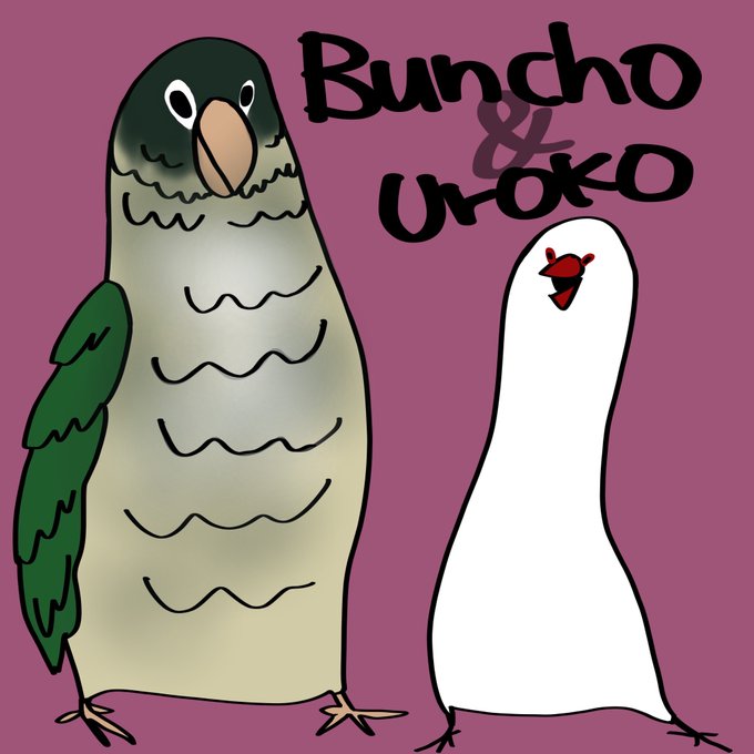 うちの文鳥とうちのウロコ。 真夜中の落書き。 #文鳥 #ウロコインコ #イラスト