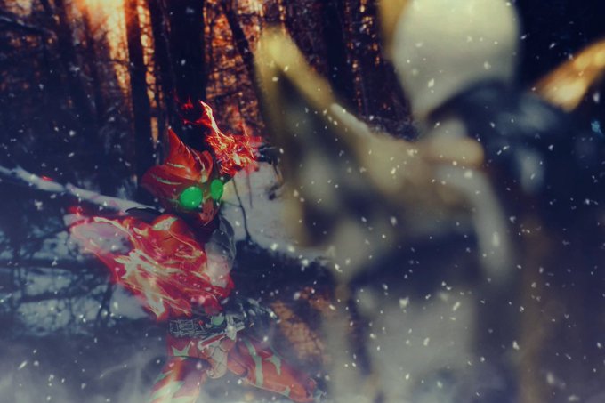 #夜のフィギュア撮影会 【今月のベストオモ写】 今月は... とことん盛ったな~と思う( ̄▽ ̄) 来月はバリエーション増やす努力しよ。 #仮面ライダーダークキバ #仮面ライダーセイバー #仮面ライダーゲンム #仮面ライダーBLACKSUN #スコーピオンゾディアーツ