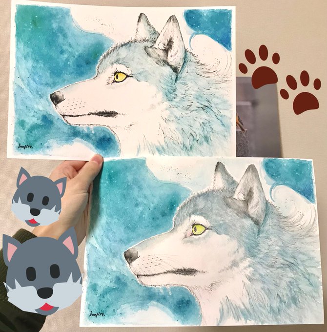 複製もぶわっと滲んだ線に味を感じる ワイルド 原画は繊細に見える どっちも違う良さある #オオカミ #アナログイラスト