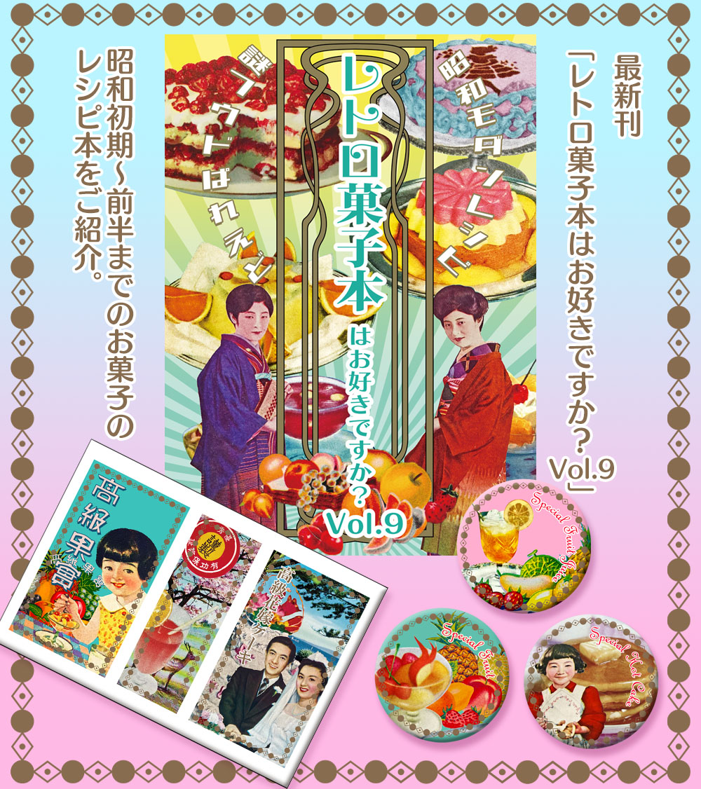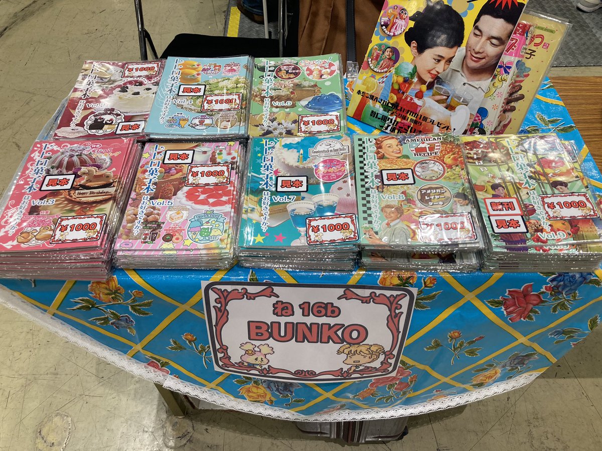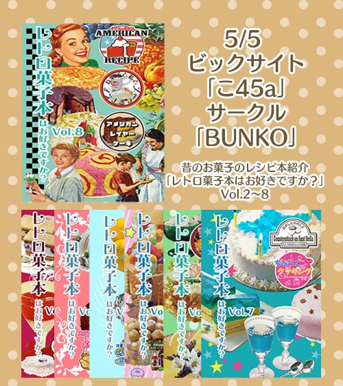 サークル「BUNKO」お品書きです。 1日目「東5-マ22a」新刊は昭和初期~昭和前半までのお菓子のレシピ本を紹介している「レトロ菓子本はお好きですか?Vol.9」(先着オマケ付き) 既刊Vol.2~9も持っていきます!よろしくお願いいたします。 #C100お品書き #コミックマーケット100