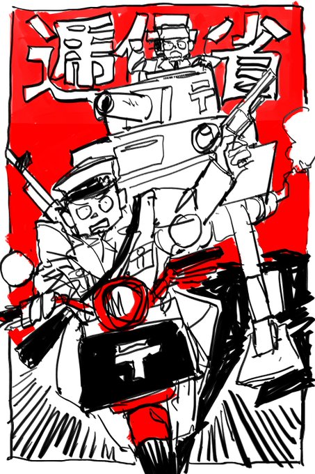 郵便配達員は銃の所持が認められていましたが、核戦争後荒廃した日本では、彼らは地域を平定し、一勢力として大きくなり、今では治安維持をするようになりさながら軍隊のようになっているとかいう…。 か、もし逓信省が莫大な力を持っていたらという世界線の漫画を描きたい!!!という爆速らくがき。